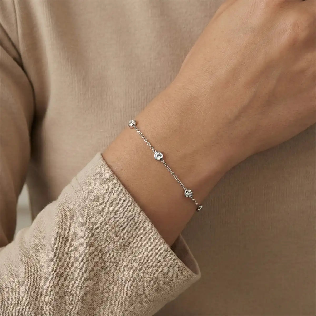 The Silver Minimal Crystal Station Bracelet is a timeless piece designed for effortless elegance. Featuring a fine sterling silver chain adorned with delicately spaced bezel-set crystals, this bracelet offers a soft shimmer that enhances any look without overpowering it.