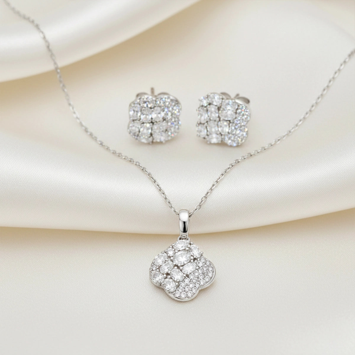 Product Name: Crystal Cluster Silver Pendant & Stud Combo